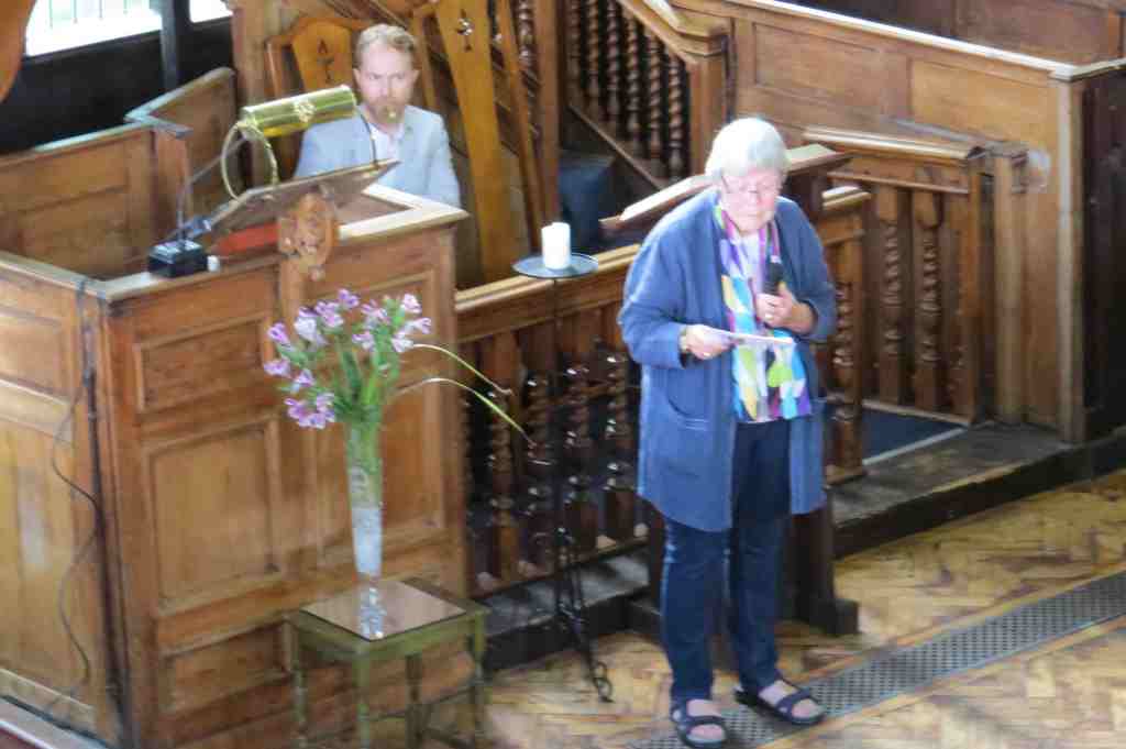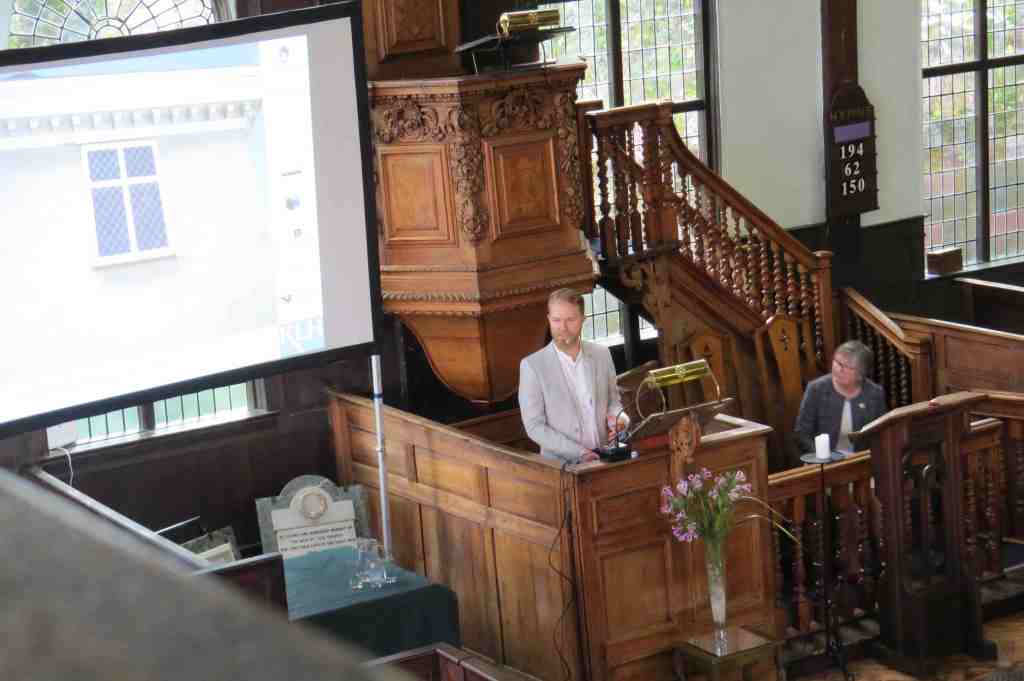 The audience heard the story of the work, undertaken by experts, to the fabric of the building, including windows, roof and walls. More about this work is on the Meeting House website.